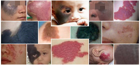 红色胎记:包括鲜红斑痣、草莓样、毛细、海绵状。常常在出生或出生后不久出现,损害表现为浅红或紫红色的斑片,多发生在面、颈部等处,其它部位也有发生。随年龄增长红斑颜色会加深、面积增大、表面可有结节或疣状增生。