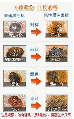 温馨提醒:如果痣体迅速生长变大,颜色变浅或加深发亮,痣上的短发脱落,痣的周围发亮,痣上的短发脱落,痣的周围发红,隐红可见到血丝,表面有破溃结痂甚至形成经久不愈的溃疡。附近的淋巴结肿大,或者在大痣的周围出现一些卫星样的小痣等,都暗示痣有恶性变的倾向,应及时处理。