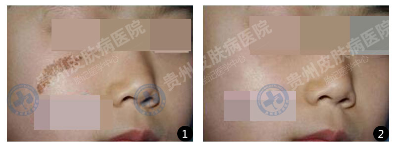 治疗史:先天性咖啡斑,激光数次治疗无效。经贵州皮肤病医院科学去胎记治疗一次,完全康复。
