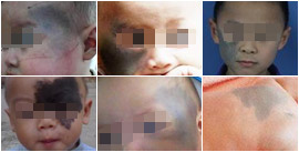 青胎记皮损的颜色还会因为劳累、日晒、月经期、妊娠而加重,有的青春期还会变深扩大。一般常见的受累部位有前额、眶周、颞、颧部和鼻翼,角膜、结膜、眼底、虹膜、视神经、视神经乳头、眼球后脂肪和眶周骨膜也可累及。