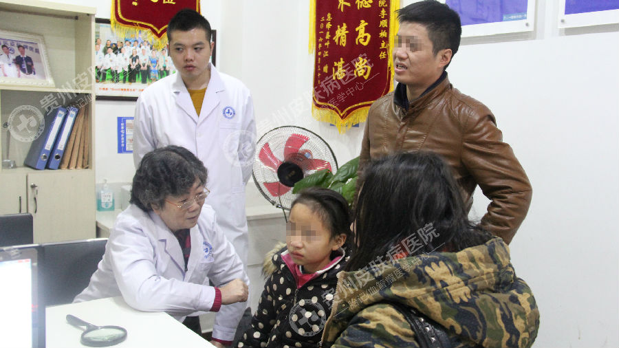 贵阳的林女士:“我家孩子生下来胳膊上就有个大胎记,找了不少家医院都说不好治,这次贵州皮肤病医院把常教授请来,我赶紧把孩子带来看看,这胎记还能不能治?”